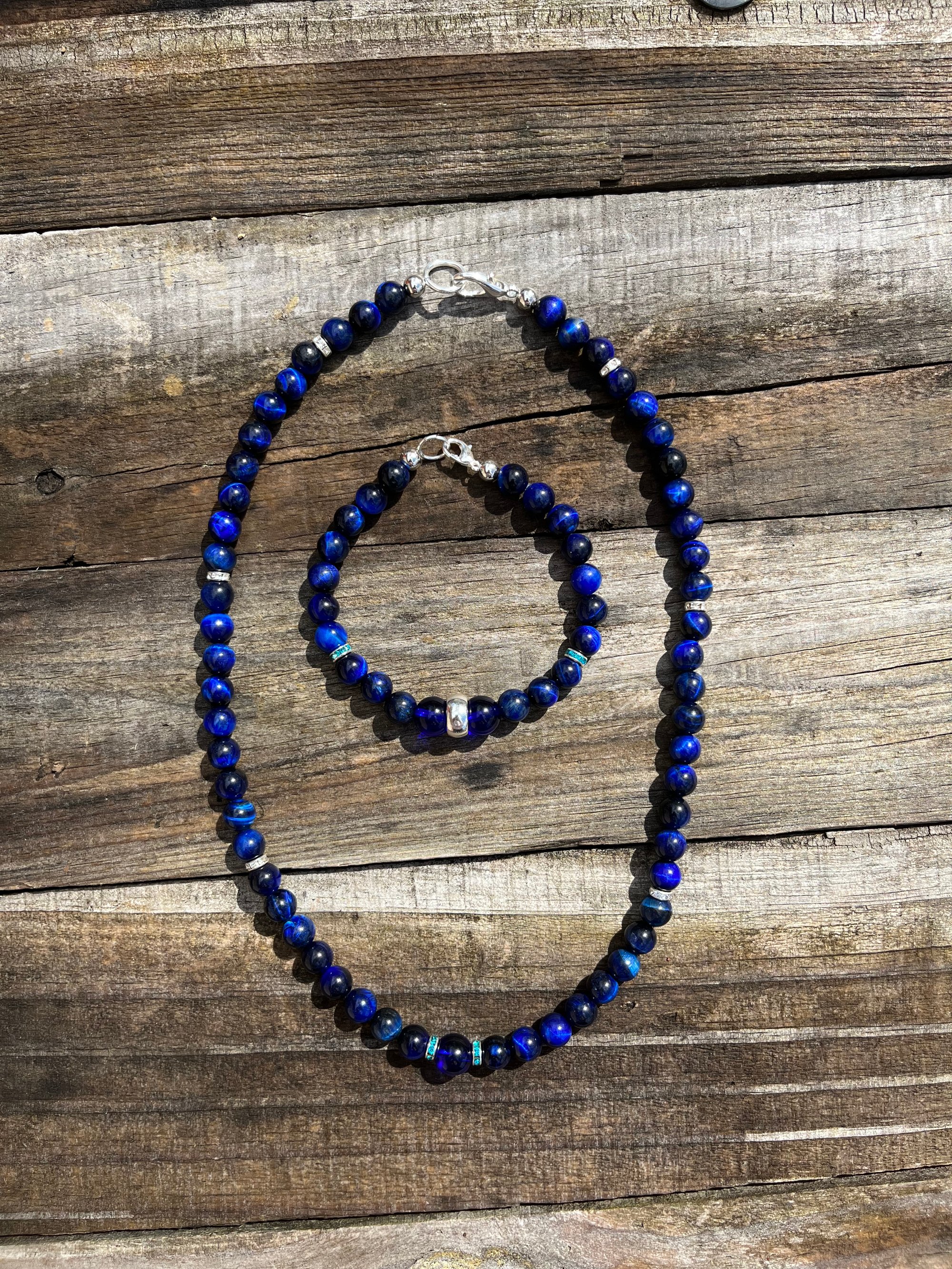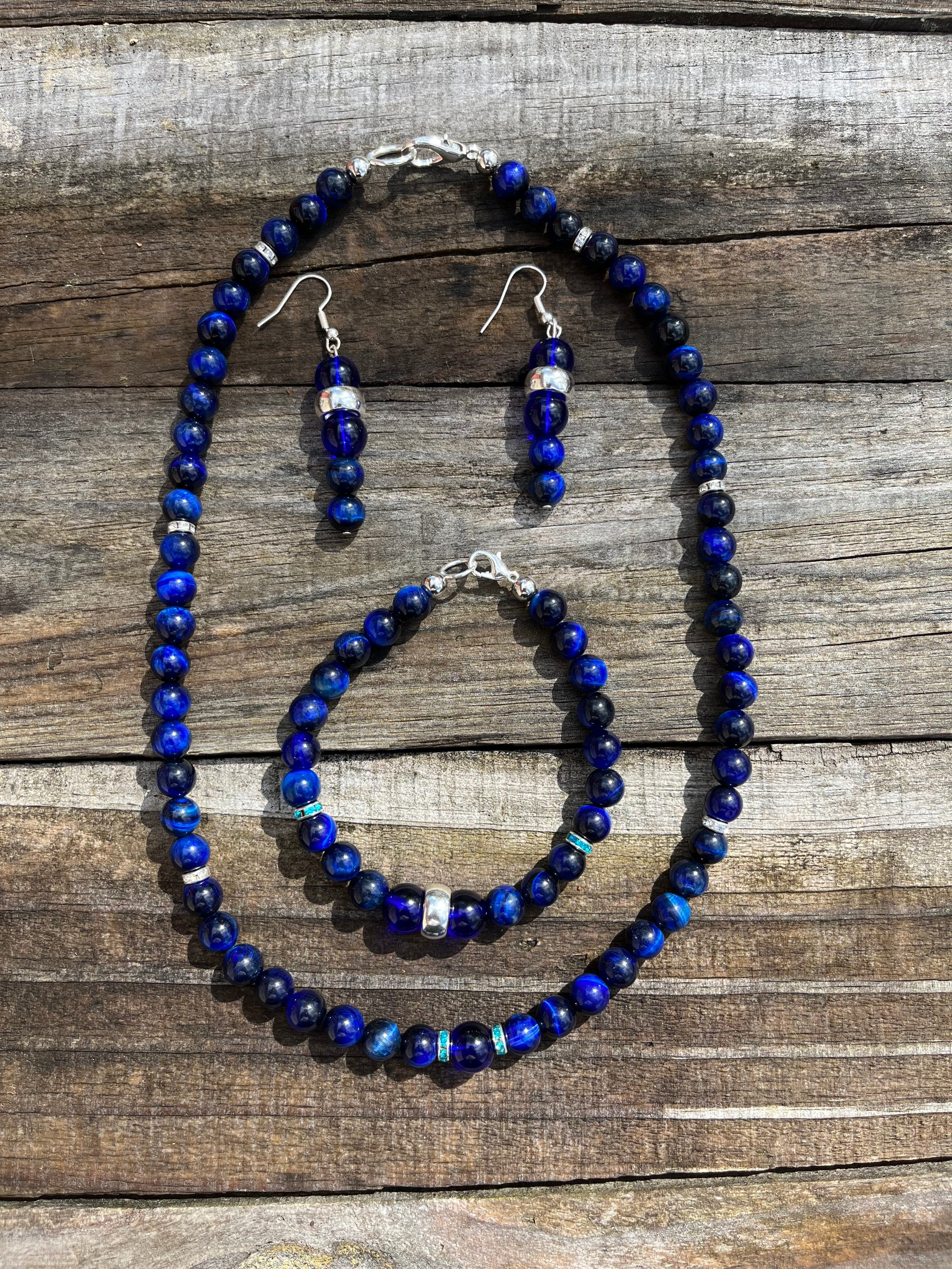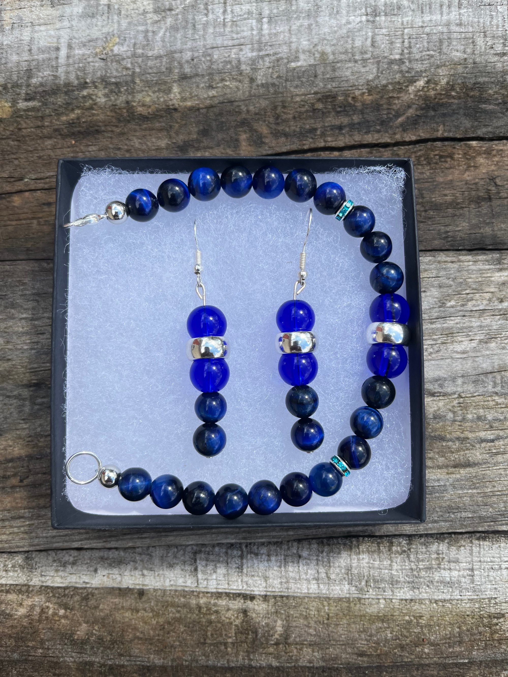 *Adorned with 8mm semi-precious cobalt blue glass beads, this set exudes elegance and sophistication, adding a pop of color to any outfit.