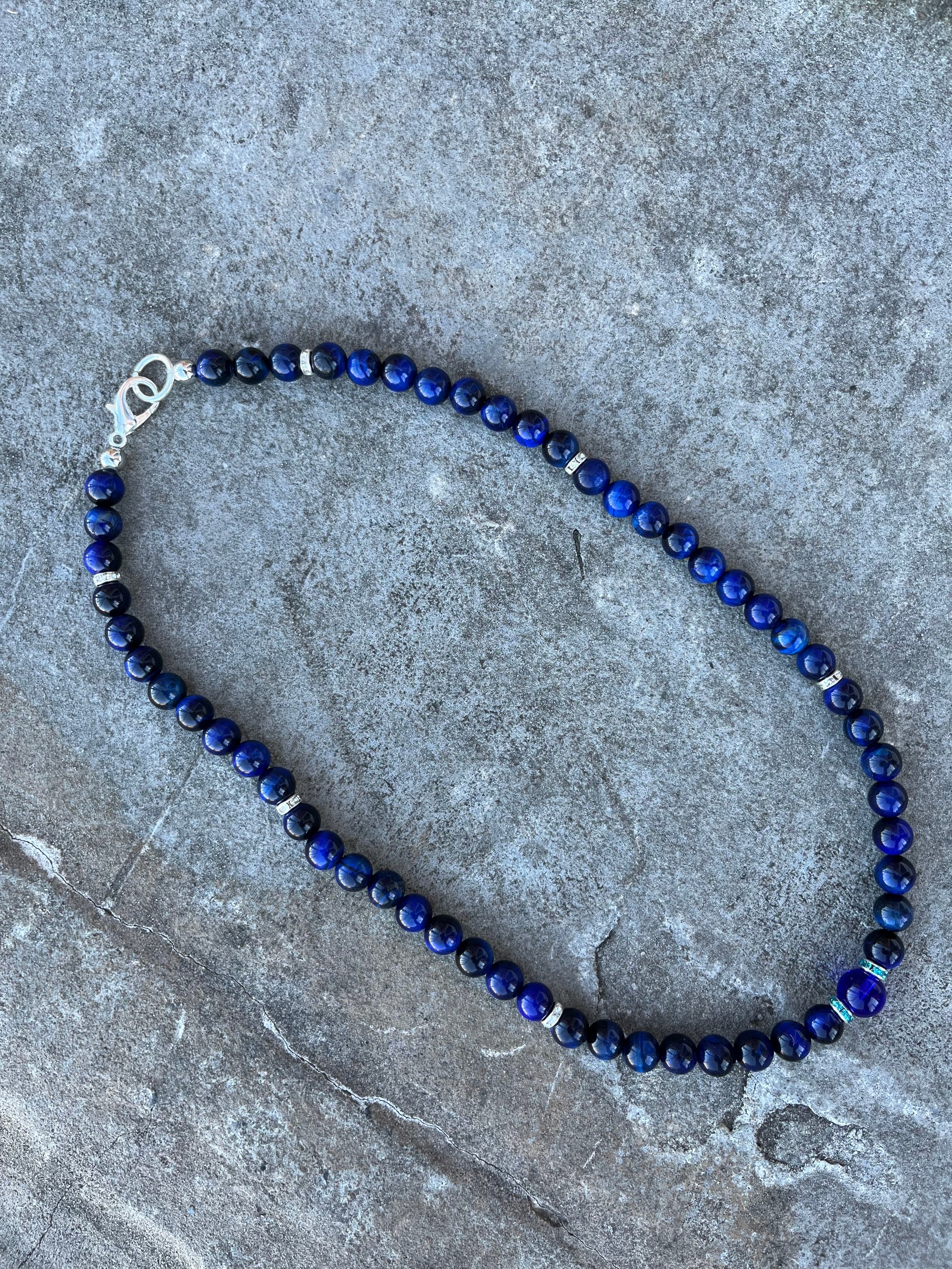 *Clear blue rondelles further enhance the visual appeal of this classic piece, adding depth and dimension to the design.
