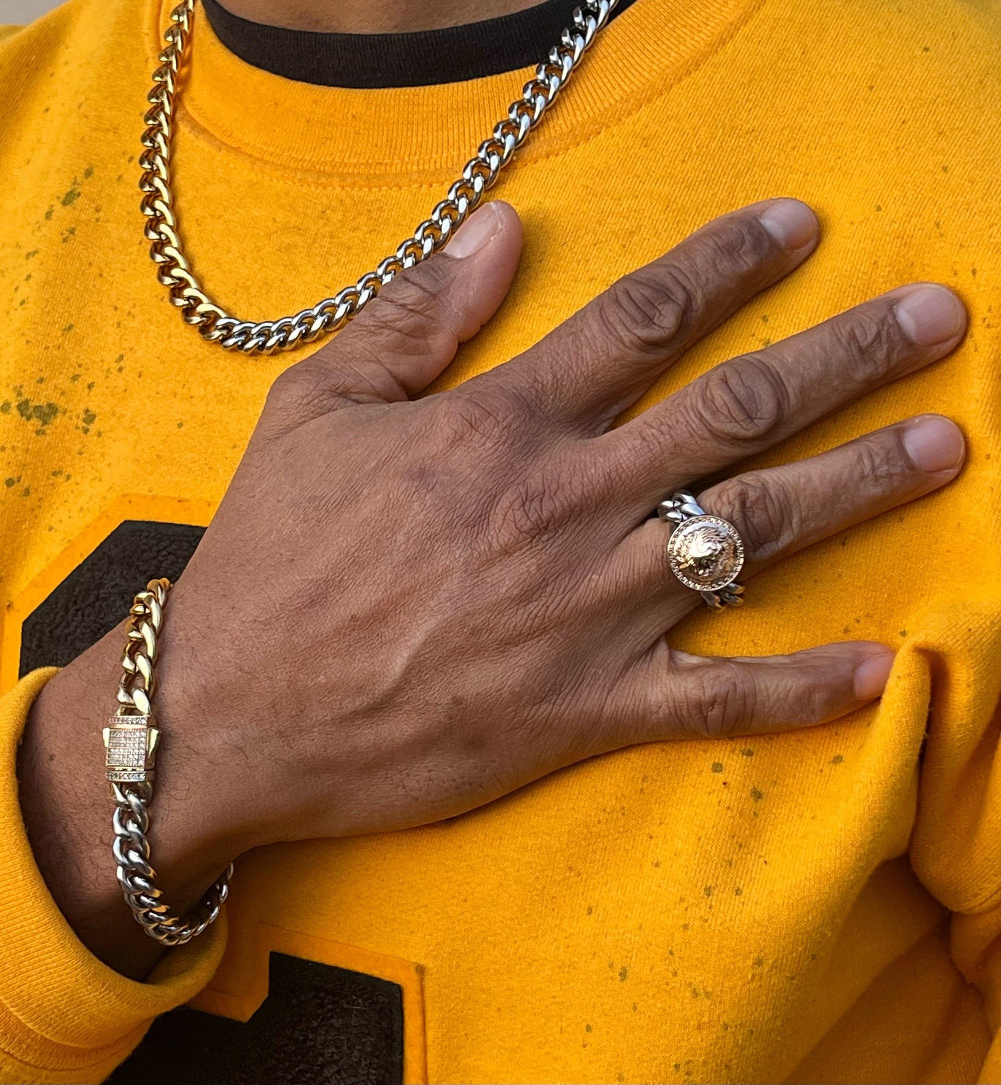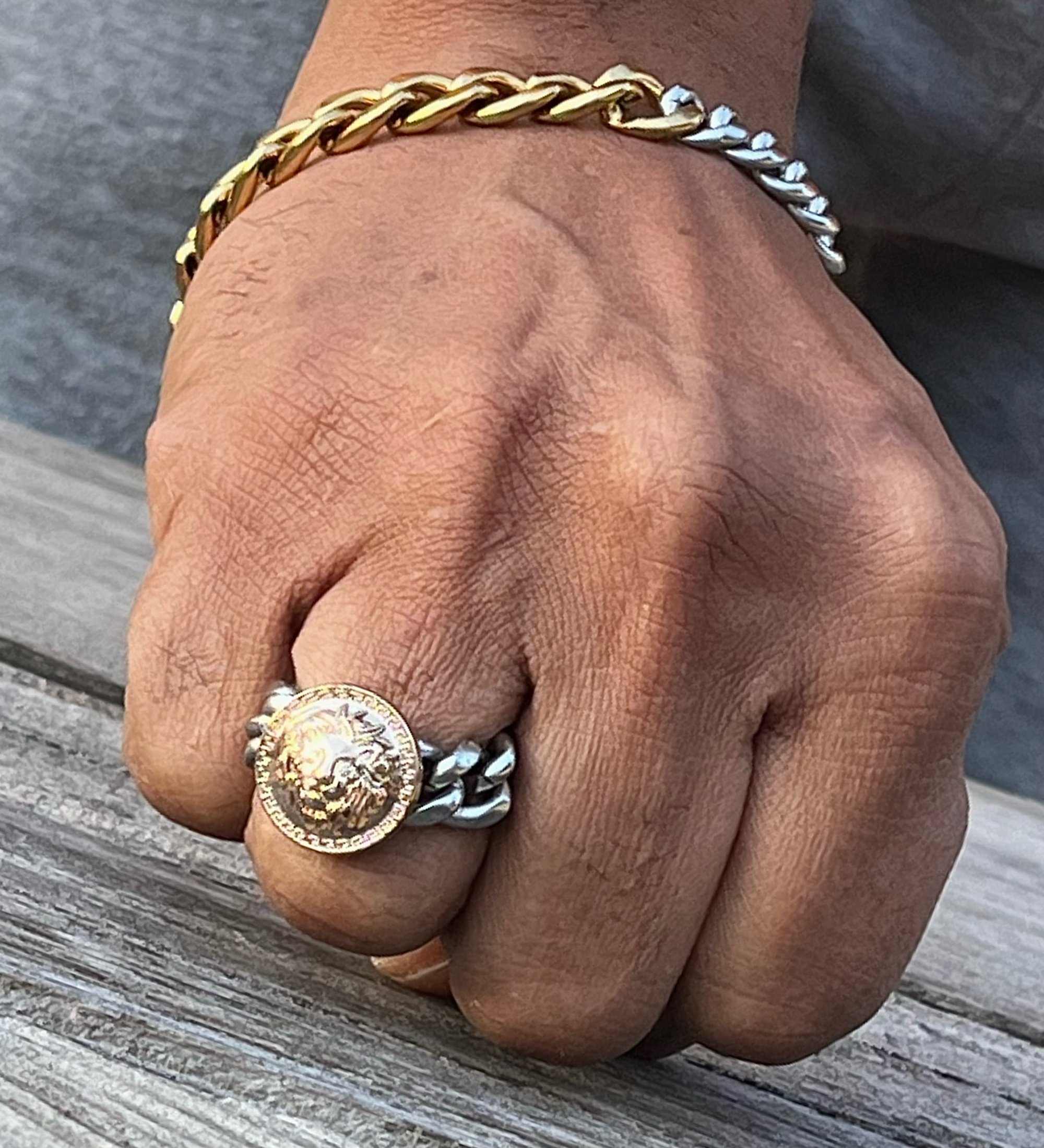 *The ring steals the spotlight with its lion head topper welded upon a stainless steel cuban link chain, showcasing unparalleled craftsmanship, style, and innovation.