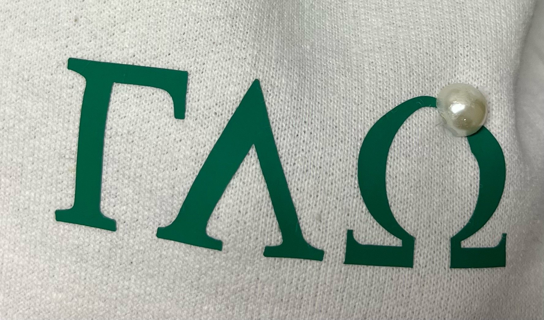 * Layered mixed media feature the infamous sorority colors of pink and green